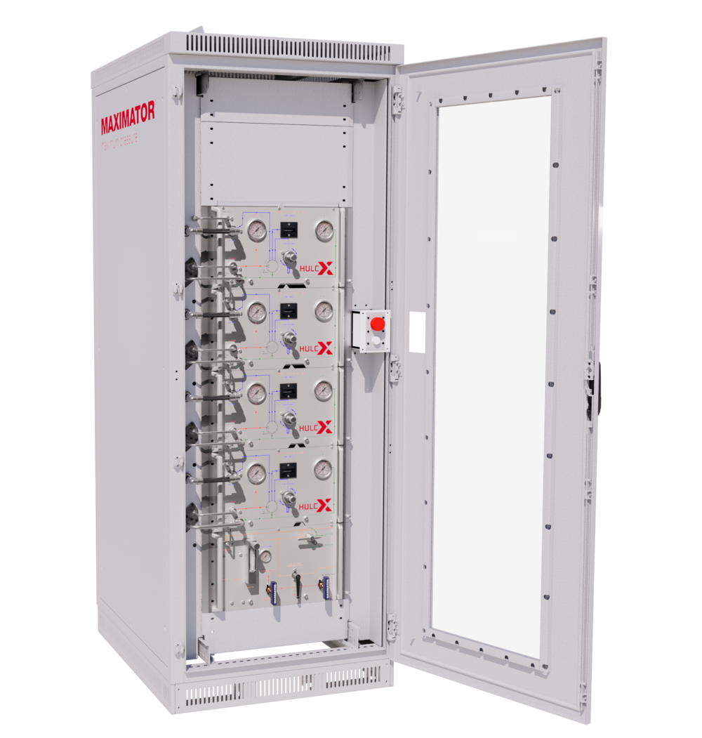 Die Maximator HULC-Serie ist ein pneumatisch betriebenes, hochmodulares Wasserstoff-Verdichtersystem. Neben innovativen Technologien, wie dem neuen Wechselkonzept, dem Spülverfahren Nitrogen Flow Purge oder unserem Effektivitätsbooster Flex Drive überzeugt die HULC Serie vor allem durch ihre Modularität. Je nach Anwendung kann der HULC exakt auf die jeweiligen Anforderungen konfiguriert werden.